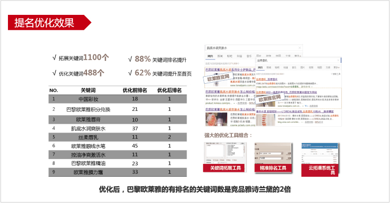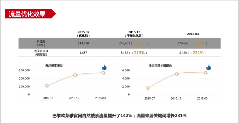 优化目标:提升欧莱雅官网基础,增加能带来流量的关键词数,官网流量超越目标竞品